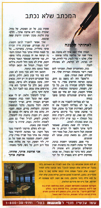 אני מתנחם מעט בעובדה שאת כבר ידעת על